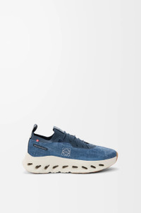 Lightweight sneaker in polyester with an engineered light foam sole and rubber pods. Characterised by a knitted mesh sock upper updated with a denim print and speed laces for improved functionality, the Cloudtilt features the CloudTec® Phase midsole technology for comfortable walking experience. - LOEWE Anagram and On logo on both sides of the shoes - Back and tongue loop for easy step in - Double laces provided - Runs small to size - we suggest to order a size up. For more information, please review the size guide. Colour: Denim Blue Main material: Polyester Weight: 0.3 kg