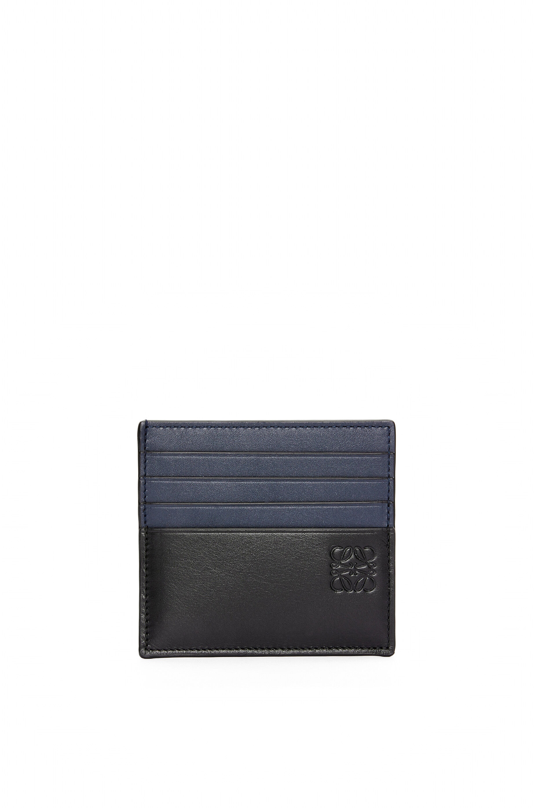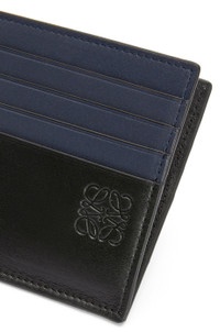 Cardholder in bicolour shiny calfskin with an open side that enables easy access. - Eight card slots and one central pocket - Calfskin lining - Embossed Anagram Details - Colour: Black/Deep Navy - Main material: Shiny Calf - Weight: 0.03 kg - Volume: SS24 M's Spring Drop 1 - Height (cm): 9.5 - Width (cm): 10 - Depth (cm): 0.5 - Height (inch): 3.7 - Width (inch): 3.9 - Depth (inch): 0.2 - Model ID: C568W72X01 - CIL: 0010969004 - Made in: Spain