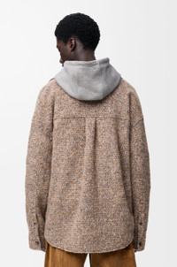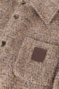 Overshirt in medium-weight brushed wool and llama blend featuring a micro-check pattern. - Regular fit, regular length - Classic collar - Button front fastening, buttoned cuffs - Chest patch pocket - LOEWE Anagram embossed leather patch placed on the chest pocket Colour: Beige/Blue Melange Main material: Wool/polyamide/alpaca Weight: 0.83 kg Made in: Italy Materials & care Main Material: 47% wool 35% lama 8% polyamide 5% alpaca 5% mohair