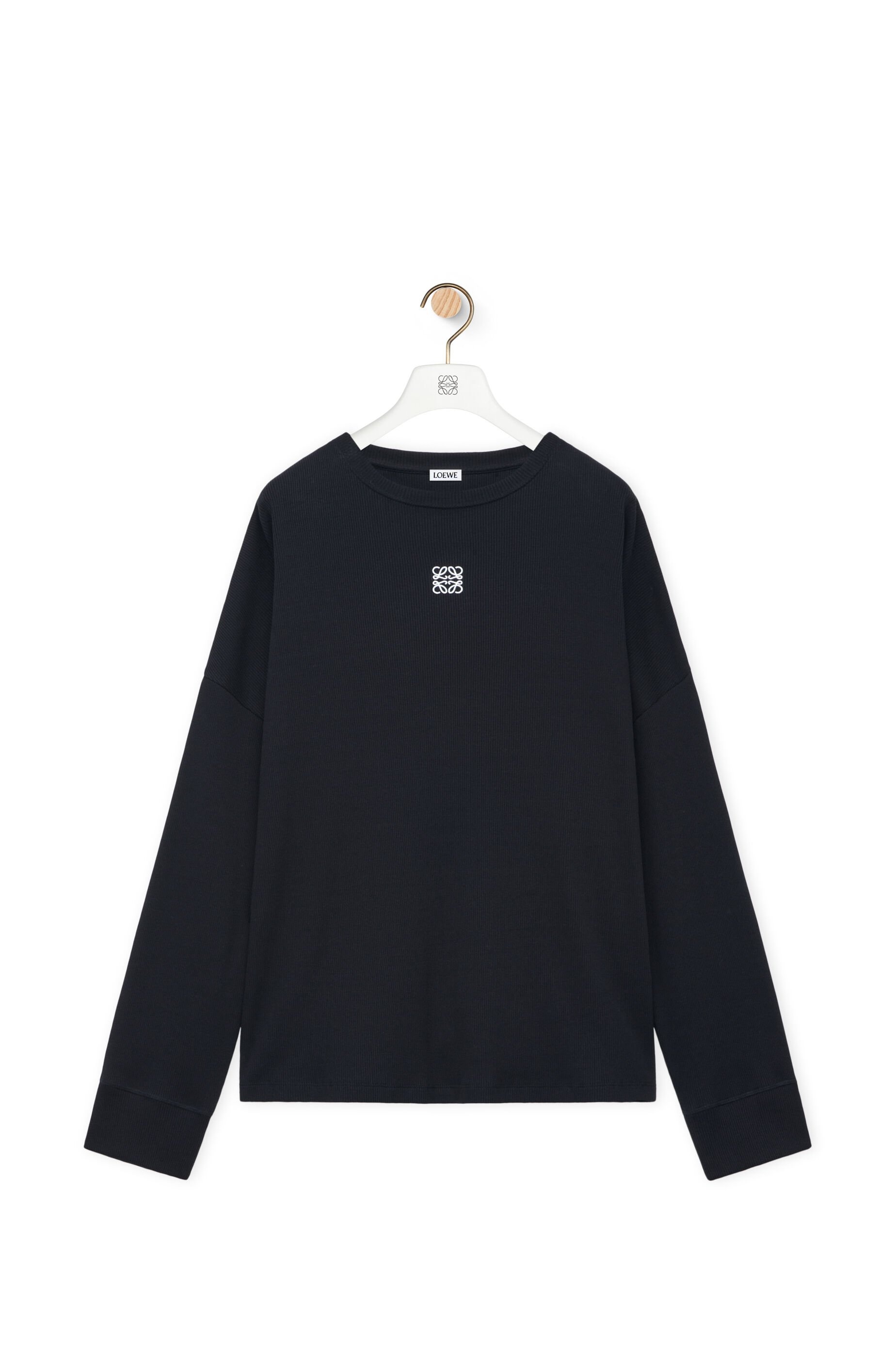 Long sleeve T-shirt crafted in medium-weight ribbed cotton jersey. - Oversized fit - Regular length - Crew neck - Long sleeves - Ribbed cuffs - Anagram embroidery placed at the front Details - Colour: Black - Main material: Cotton - Weight: 0.5 kg - Model ID: H526Y22XAY - Made in: Portugal