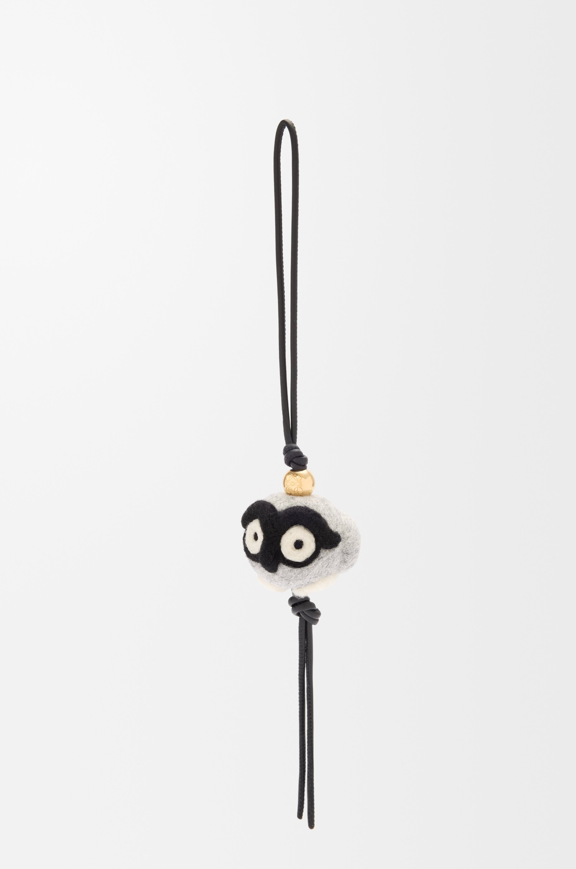 Owl charm in felt with a looped calfskin strap and an Anagram Pebble in a gold finish. - Engraved Anagram Colour: Light Grey/Black Metallic colour: Gold Main material: Felt Weight: 0.02 kg Width: 30 cm Depth: 5 cm Made in: Spain