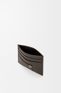 Cardholder in vintage-finish shiny calfskin with denim trousers-inspired details. - Four card slots, one central pocket - Calfskin lining - Embossed Anagram Colour: Vintage Brown Metallic colour: Palladium Main material: Calf Weight: 0.04 kg Height: 7.5 cm Width: 10.3 cm Depth: 0.3 cm Made in: Spain