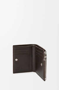 Slim compact wallet in vintage-finish shiny calfskin with denim trousers-inspired details. - Six card slots, four slip pockets, one large note pocket - One zipped coin compartment with calfskin pull - Snap button closure - Calfskin lining - Embossed Anagram Colour: Vintage Brown Metallic colour: Palladium Main material: Calf Weight: 0.1 kg Height: 11.8 cm Width: 9.3 cm Depth: 1 cm Made in: Spain