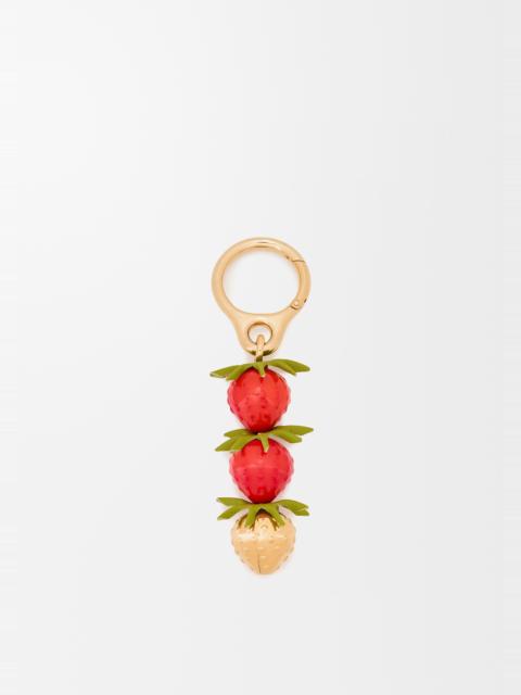 Charm in calfskin and acetate with a looped calfskin strap and an Anagram dice. Inspired by the Puzzle 10 Paula's Ibiza Parrot re-edition bag as part of the Puzzle 10th Anniversary collection. - Engraved Anagram Colour: Tan/Red Metallic colour: Gold Main material: Acetate Weight: 0.059 kg Width: 31 cm Depth: 10 cm Made in: Spain