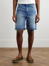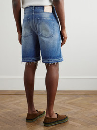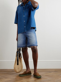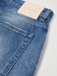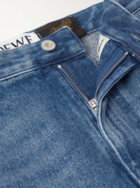Loewe's capsule with Paula's Ibiza is inspired by "the spirit of endless summer". A warm-weather staple, these denim shorts have been made in Italy and are faded and distressed to look like a pre-loved style. Size & Fit - Fits true to size, however those who are between sizes should take the larger size - Regular-straight leg, mid-rise style - Mid-weight, non-stretchy denim - Model is shown wearing an IT 48 - Model measures: waist size 32, height 6'0"/ 183cm Details & Care - Blue denim - Button and zip fastening - 100% cotton - Machine wash