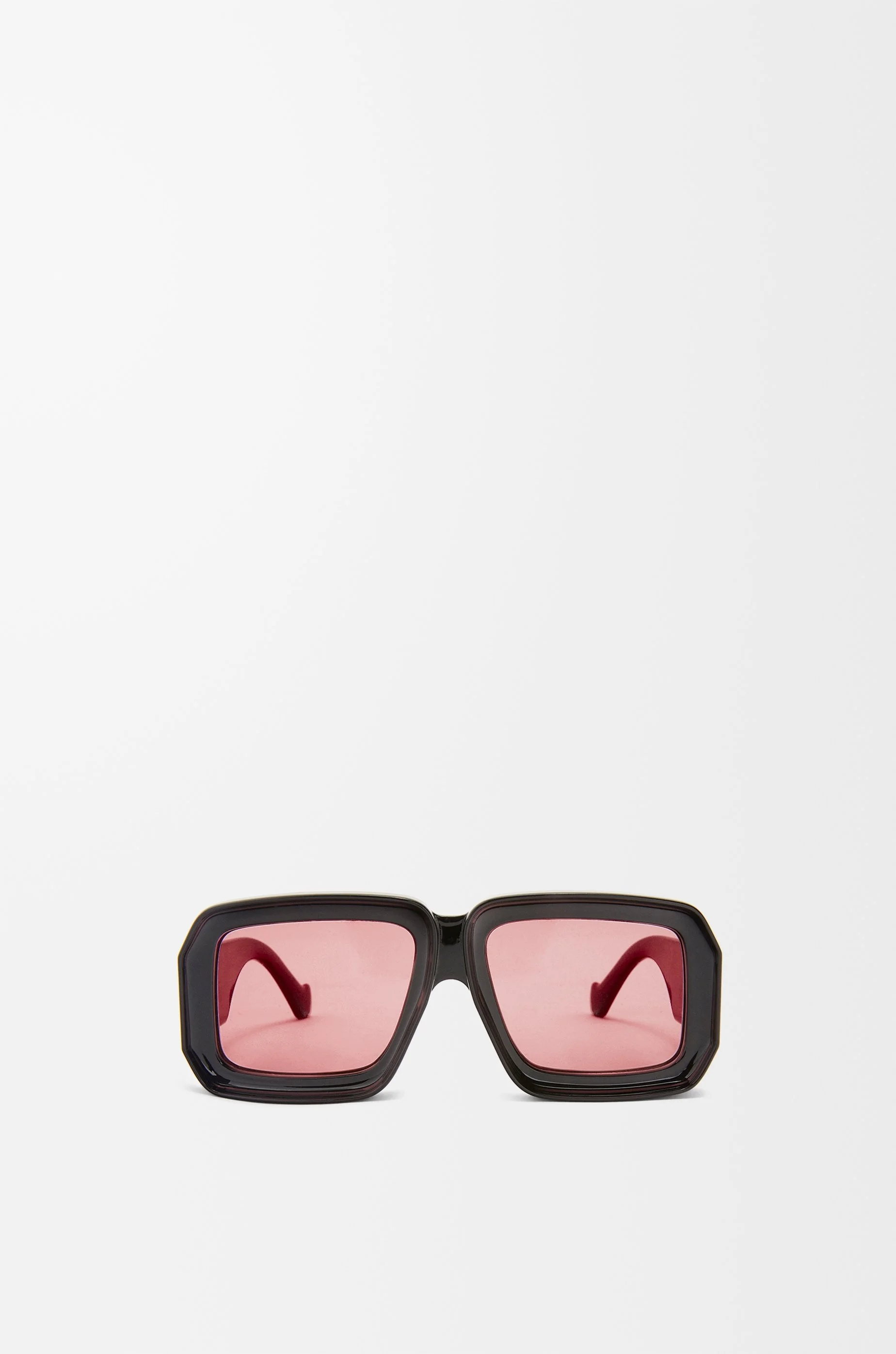 Diving mask sunglasses in acetate with thick rims and arms and a LOEWE logo. - 100% UVA/UVB protection Details - Colour: Shiny Black - Main material: Acetate - UV filter: 1 - Weight: 0.053 kg - Height (cm): 0.508 - Width (cm): 0.15 - Height (inch): 0.2 - Width (inch): 0.1 - Lens size (cm): 5.6 - Lens size (inches): 2.2 - Bridge size (cm): 1.7 - Bridge size (inches): 0.7 - Temple size (cm): 14.5 - Temple size (inches): 5.7 - Model ID: G616446X01 - CIL: 0010556256 - Made in: Italy