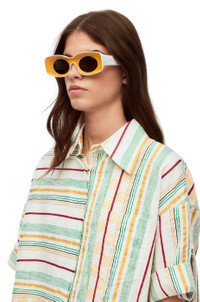 Sunglasses with oval lenses and thick squared frames, contrasting arms and coloured lenses. - 100% UVA/UVB protection Details - Colour: Dark Yellow - Main material: Acetate - UV filter: 3 - Weight: 0.062 kg - Height (cm): 0.508 - Width (cm): 0.1461 - Height (inch): 0.2 - Width (inch): 0.1 - Lens size (cm): 4.9 - Lens size (inches): 1.9 - Bridge size (cm): 2.3 - Bridge size (inches): 0.9 - Temple size (cm): 14.5 - Temple size (inches): 5.7 - Model ID: LW40033I - CIL: 0010887099 - Made in: Italy