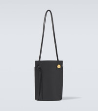 Crafted from leather, this Pebble Dice Pocket shoulder bag has an embossed logo at the bottom. All of Loewe's leather goods are handcrafted in Spain, reflecting the house's centuries-long expertise and artisanal methods. Product Details - Material: leather - Lining: leather - Made in Spain - Designer color name: Black - Item color: black - Top handle - Hardware color: gold - Item number: P01006550 Size & Fit - Height 20cm-8" - Width 15cm-6" - Max. depth 4,5cm-2" - Length of handles 53cm-21"