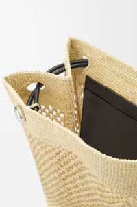 The Pebble hobo is a minimalistic vertical bag featuring a double signature Anagram Pebble. This version is crafted in handwoven raffia crochet with calfskin details. - Shoulder carry - Leather strap with shoulder tab - One internal calfskin slip pocket - Unlined - Anagram Pebble Colour: Natural Metallic colour: Palladium Main material: Raffia Strap length: 90 cm Strap drop: 34 cm Weight: 0.65 kg Height: 41 cm Width: 36 cm Depth: 13 cm Made in: Spain