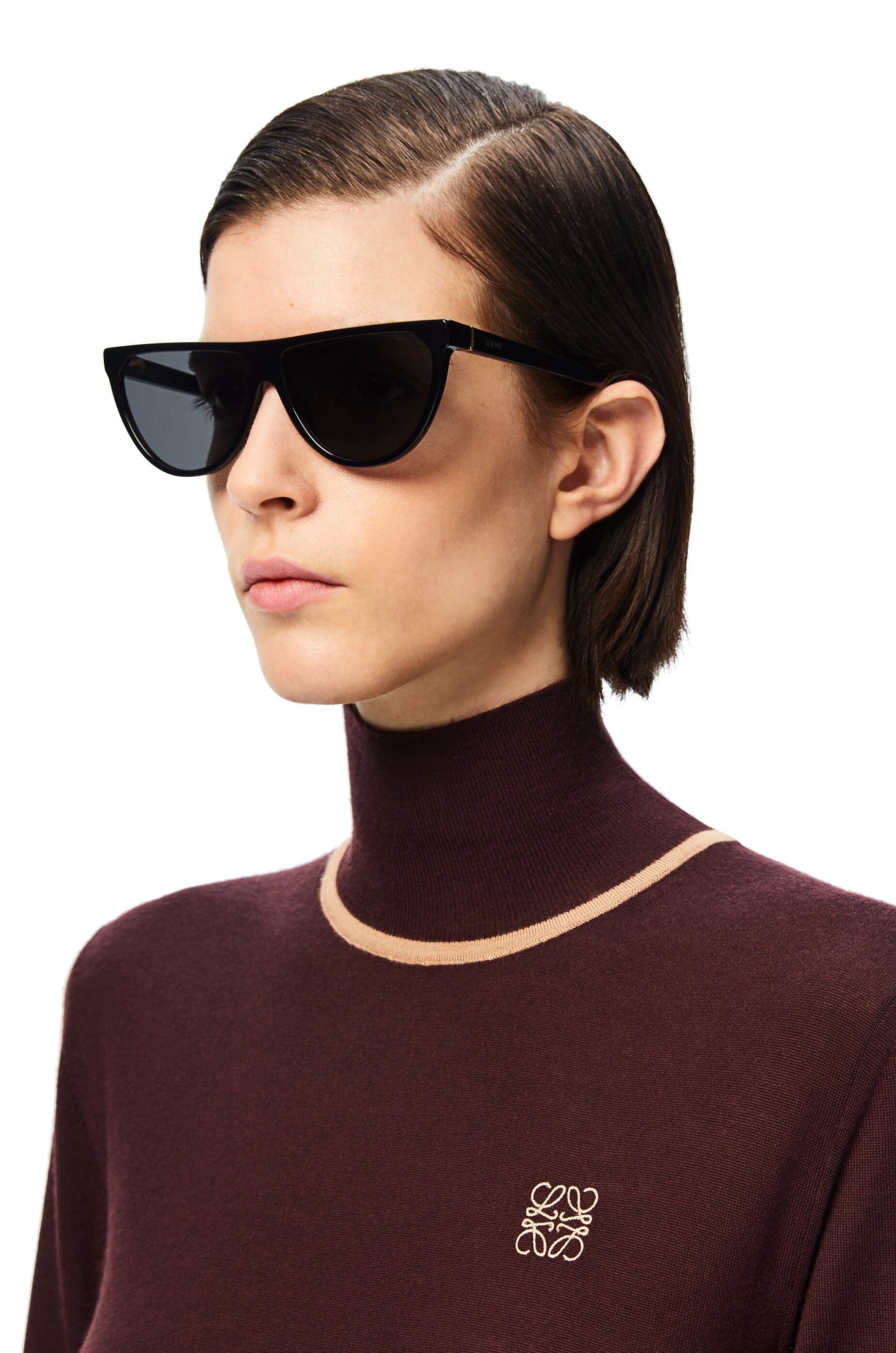 Pilots sunglasses with aviator style frames and narrow arms finished with an engraved LOEWE logo. Details - Colour: Black - Metallic colour: Palladium - Main material: Acetate - Weight : 0.1 kg - Model ID: G00036IX01 - CIL: 0010475515 - Made in: Italy