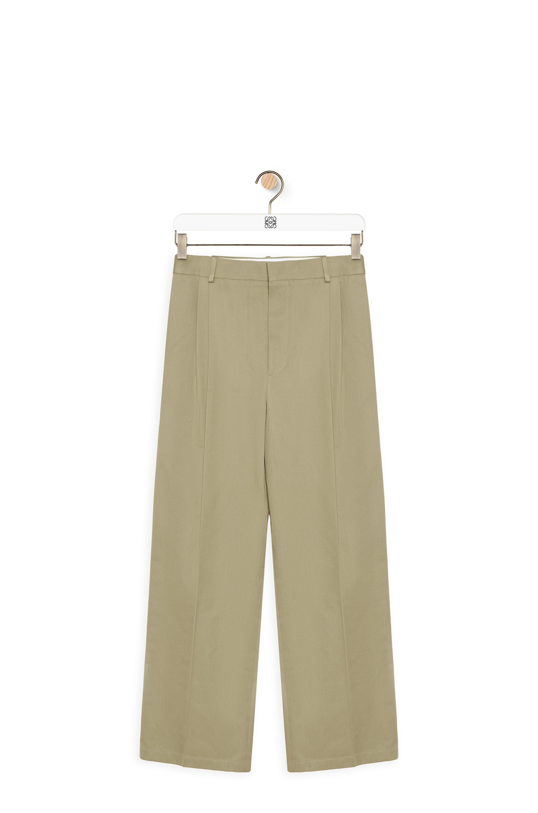 Pleated trousers crafted in lightweight compact cotton. - Relaxed fit - Regular length - Mid waist - Loose leg - Double pleated construction - Belt loops - Concealed zip fastening - Side pockets - Buttoned rear pocket - Anagram embroidery placed at the back Details - Colour: Military Green - Main material: Cotton - Weight: 0.8 kg - Model ID: H526Y04WEB - Made in: Italy