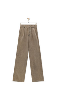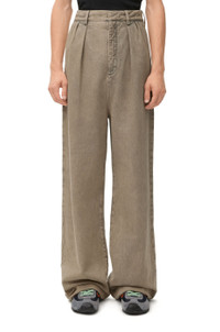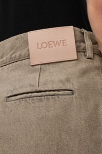 Trousers in medium-weight washed cotton denim featuring a pleated front. - Relaxed fit, regular length - Mid waist, straight leg - Concealed zip fly - Slash pockets, rear welt pocket - LOEWE embossed leather patch placed at the back Details - Colour : Sand - Main material : Cotton - Weight : 1.0 kg - Model ID : H526Y11W75 - Made in : Italy