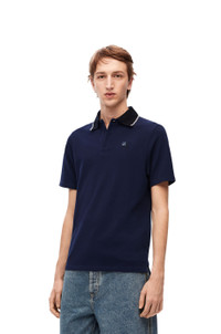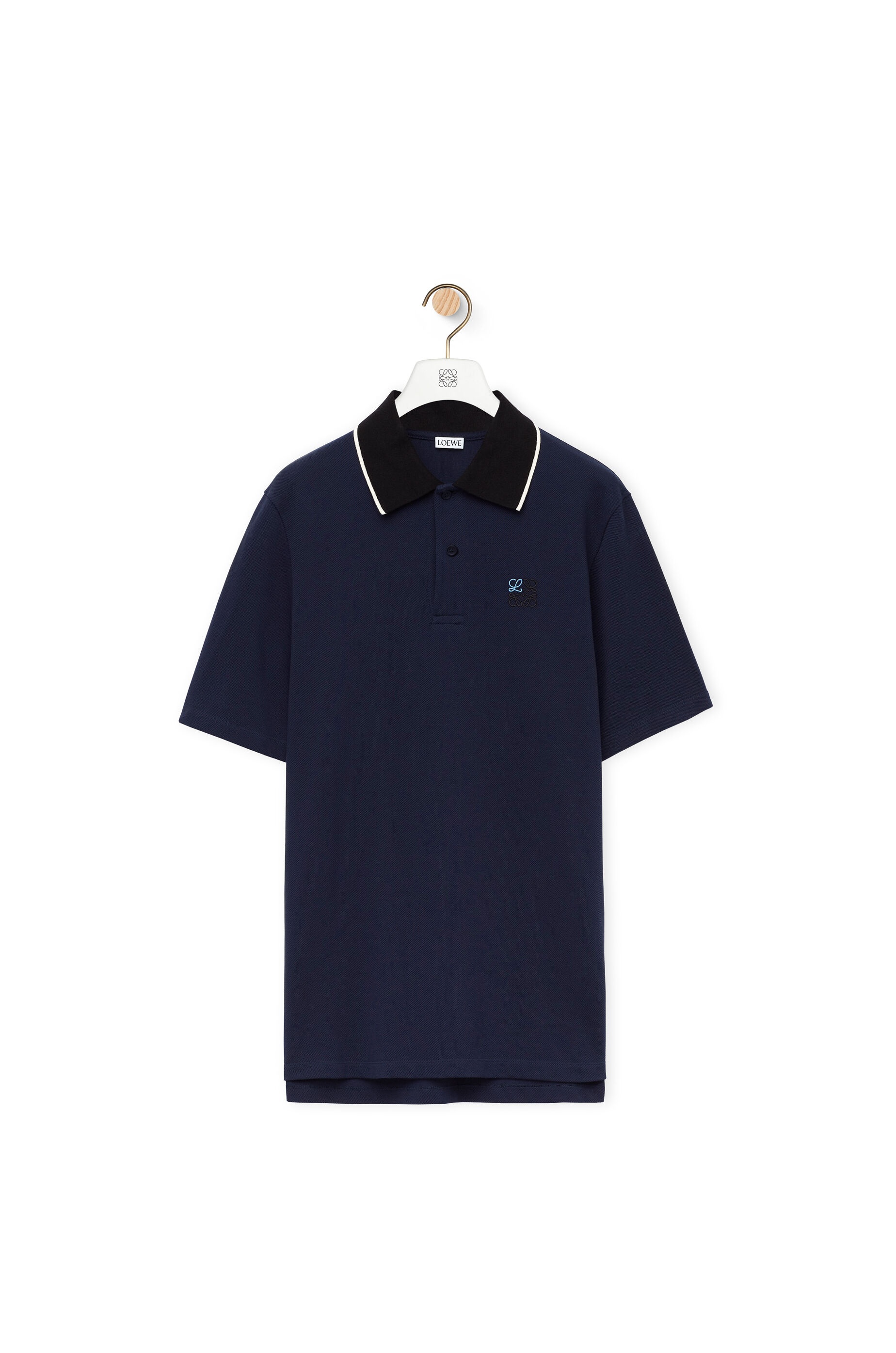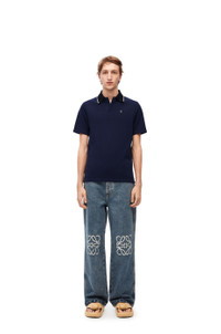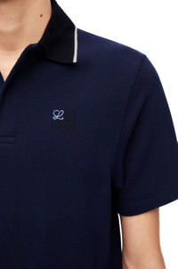 Polo crafted in lightweight cotton piqué. - Regular fit - Regular length - Two-tone ribbed knit polo collar - LOEWE engraved buttons - Short sleeves - Two-tone Anagram embroidery placed at front Details - Colour: Midnight Blue - Main material: Cotton - Weight: 0.2 kg - Model ID: H526Y26J07 - Made in: Portugal