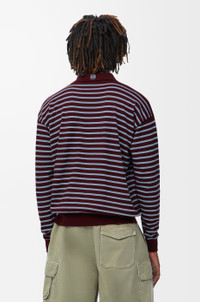 Sweater in lightweight cotton featuring two-tone stripes and a polo collar with dyed mother-of-pearl buttons. - Relaxed fit, regular length - Jersey stitch - Anagram embroidery placed at the back Colour: Burgundy/Light Blue Main material: Cotton Weight: 0.282 kg Made in: Italy