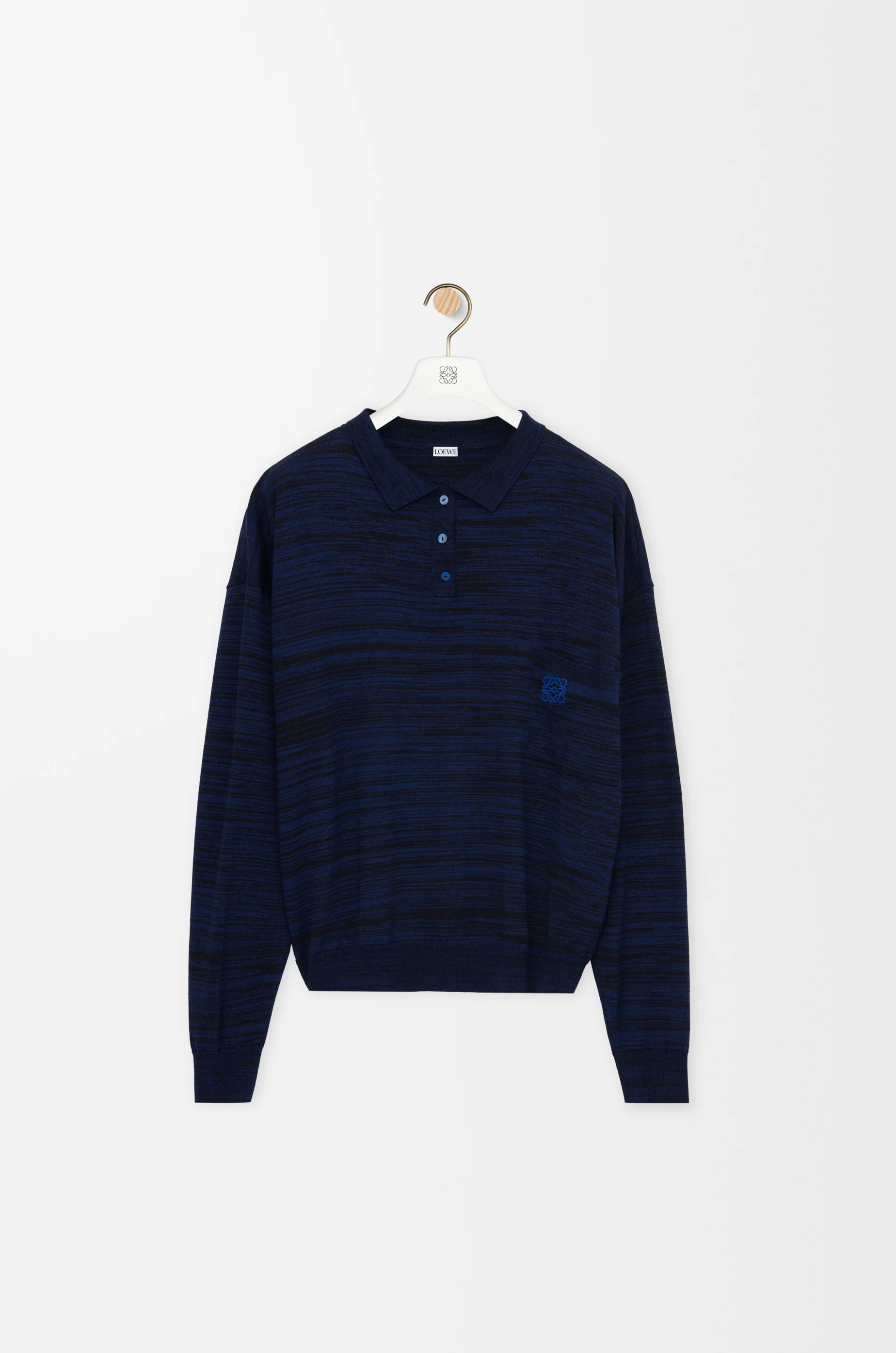 Sweater in lightweight wool featuring a one-of-a-kind irregular pattern. - Relaxed fit, regular length - Jersey stitch - Polo collar - Ribbed collar, cuffs and hem - Anagram embroidery placed on the chest pocket Colour: Navy/Black Main material: Wool Weight: 0.31 kg Made in: Italy Materials & care Main Material: 100% wool