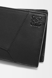 Bifold coin wallet inspired by the Puzzle bag's distinctive geometric pattern. This version is crafted in classic calfskin. - Four card slots, two large note pockets, one flat pocket - One coin compartment with snap button closure - Calfskin lining - Embossed Anagram Colour: Black Metallic colour: Palladium Main material: Classic Calf Weight: 0.09 kg Height: 9.8 cm Width: 11 cm Depth: 2 cm Made in: Spain