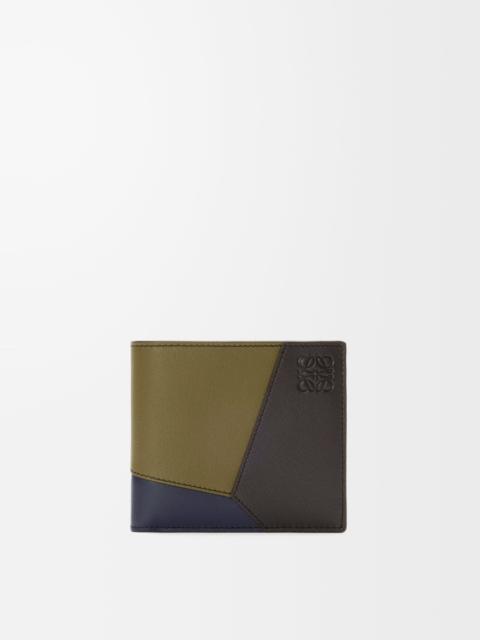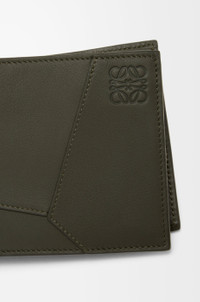 Bifold coin wallet inspired by the Puzzle bag's distinctive geometric pattern. This version is crafted in classic calfskin. - Four card slots, two large note pockets, one flat pocket - One coin compartment with snap button closure - Calfskin lining - Embossed Anagram Colour: Dark Khaki Metallic colour: Palladium Main material: Classic calf Weight: 0.09 kg Height: 9.8 cm Width: 11 cm Depth: 2 cm Made in: Spain