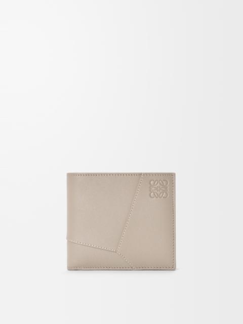 Bifold coin wallet inspired by the Puzzle bag's distinctive geometric pattern. This version is crafted in classic calfskin. - Four card slots, two large note pockets, one flat pocket - One coin compartment with snap button closure - Calfskin lining - Embossed Anagram Colour: Corda Metallic colour: Palladium Main material: Classic Calf Weight: 0.09 kg Height: 9.8 cm Width: 11 cm Depth: 2 cm Made in: Spain