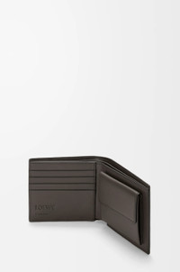Bifold coin wallet inspired by the Puzzle bag's distinctive geometric pattern. This version is crafted in supple grained calfskin. - Four card slots, two large note pockets, one flat pocket - One coin compartment with snap button closure - Calfskin lining - Embossed Anagram Colour: Dark Grey Metallic colour: Palladium Main material: Supple grained calf Weight: 0.09 kg Height: 9.8 cm Width: 11 cm Depth: 2 cm Made in: Spain