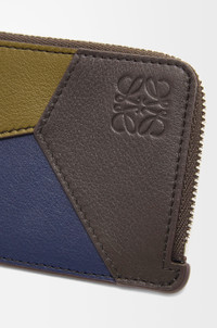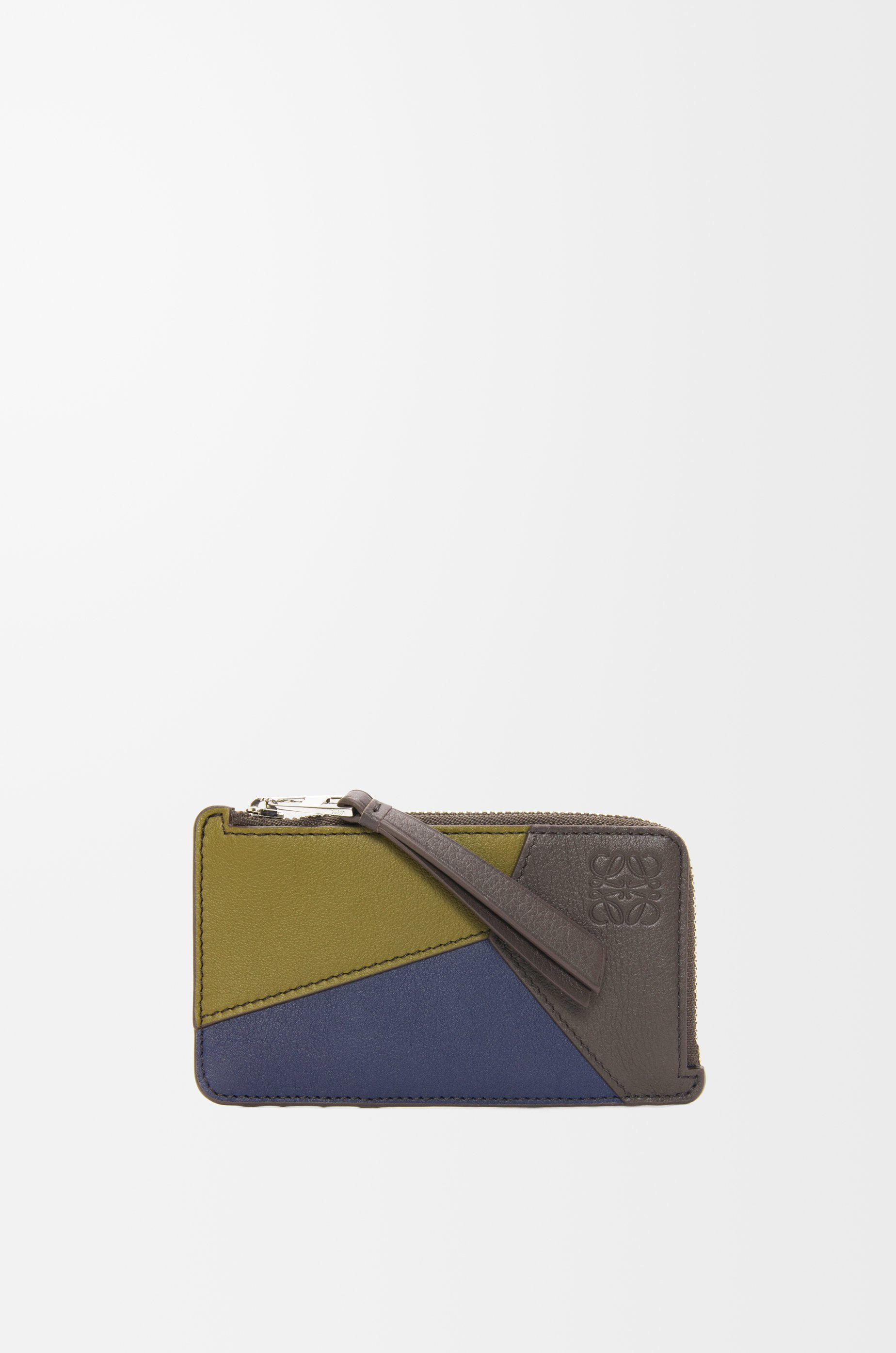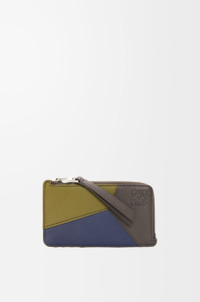 Coin cardholder inspired by the Puzzle bag's distinctive geometric pattern. This version is crafted in classic calfskin in contrasting colours. - Four card slots - One zipped coin compartment with calfskin pull - Calfskin lining - Embossed Anagram Colour: Olive/Dark Brown Metallic colour: Palladium Main material: Classic Calf Weight: 0.04 kg Height: 7.5 cm Width: 13 cm Depth: 1 cm Made in: Spain