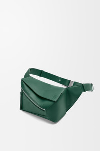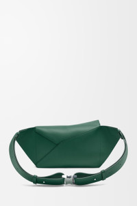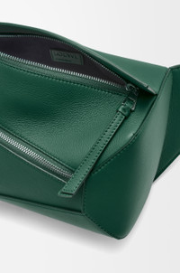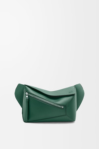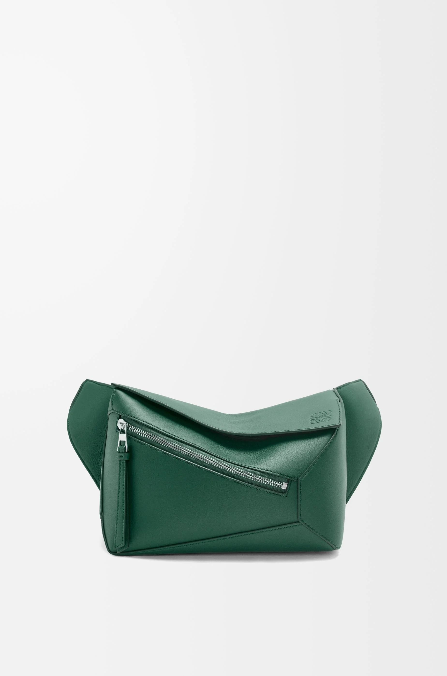 The Puzzle bag is the debut bag for LOEWE by Creative Director Jonathan Anderson. A cuboid shape and precise cutting technique create Puzzle’s distinctive geometric lines. This small bumbag version is crafted in classic calfskin. - Shoulder or crossbody carry - Adjustable strap featuring metal clasp closure with engraved LOEWE - Zip closure with calfskin zip pull - One external zip pocket, one internal slip pocket - Herringbone cotton canvas lining - Embossed Anagram Details - Colour : Evergreen - Metallic colour : Palladium - Main material : Classic Calf - Strap length : 88 - 147 cm - Strap Drop : 40 - 71 cm - Weight : 0.54 kg - Height (cm) : 16 - Width (cm) : 24 - Depth (cm) : 10.5 - Height (inch) : 6.3 - Width (inch) : 9.4 - Depth (inch) : 4.1 - Model ID : B510SEBX02 - CIL : - 0011193448 - Made in : Spain