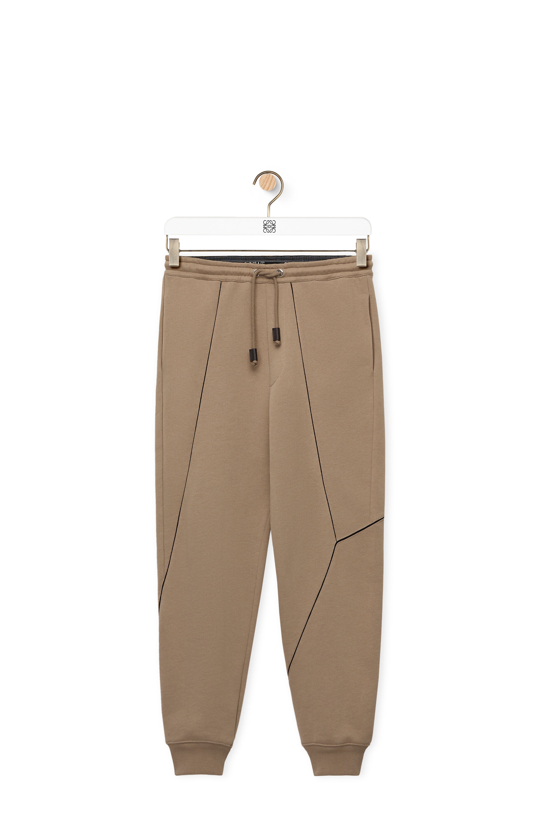 Jogging trousers in medium weight loop back cotton fleece with asymmetric seams all-over inspired by the iconic Puzzle bag. With elasticated waist, side pockets and ribbed cuffs. - Relaxed fit - Embossed LOEWE leather drawstring tab - Embossed Anagram calfskin tab Details - Colour: Sand - Main material: Cotton - Weight: 0.6 kg - Model ID: H526Y27J19 - Made in: Portugal