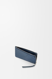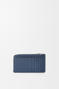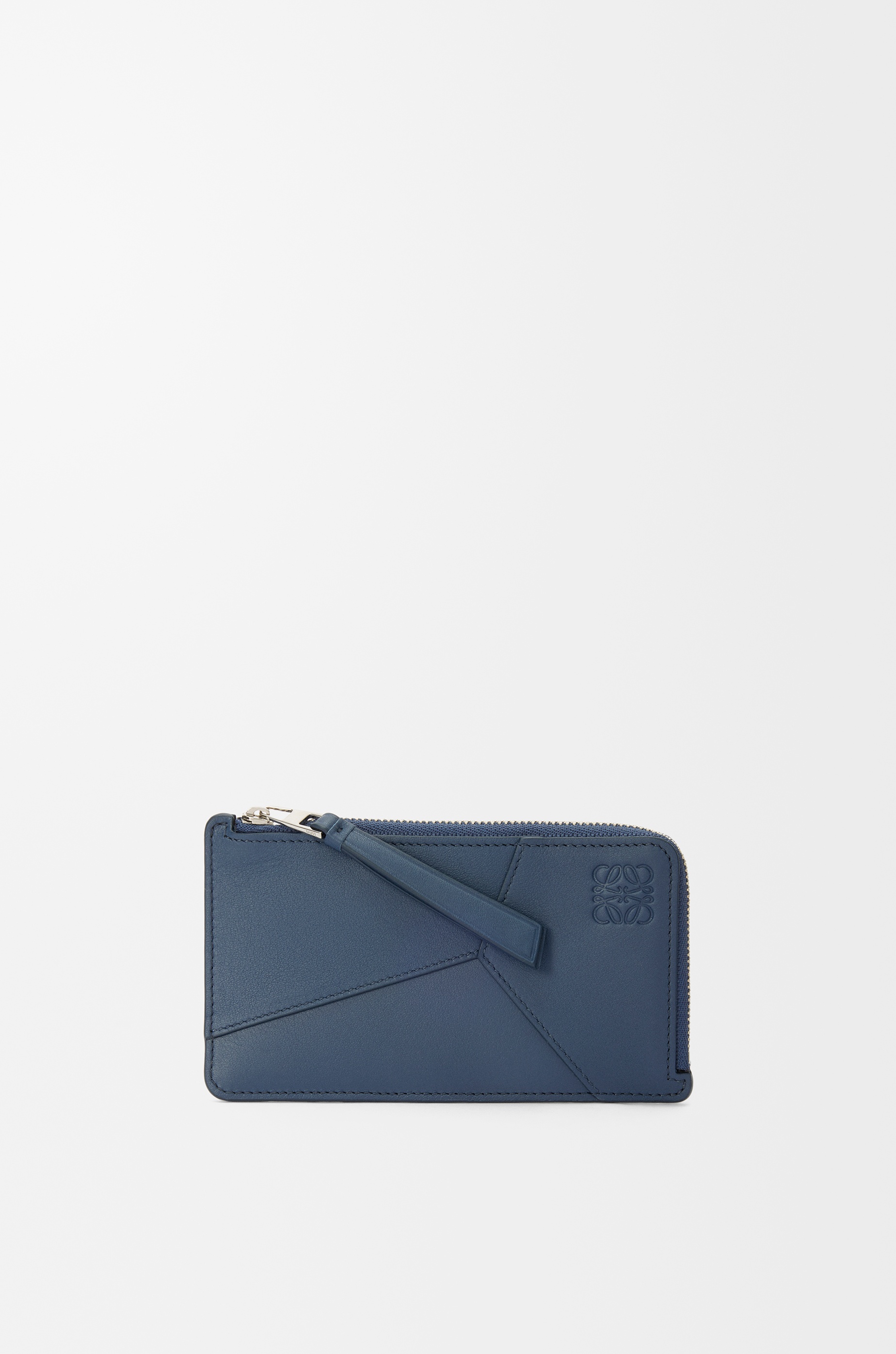 Coin cardholder inspired by the Puzzle bag's distinctive geometric pattern. This version is crafted in classic calfskin. - Six card slots, one pocket - One zipped coin compartment with calfskin pull - Calfskin lining - Embossed Anagram Colour: Indigo Dye Metallic colour: Palladium Main material: Classic Calf Weight: 0.06 kg Height: 8.6 cm Width: 14.3 cm Depth: 0.3 cm Made in: Spain