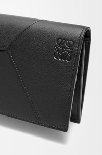 Long horizontal wallet inspired by the Puzzle bag's distinctive geometric pattern. This version is crafted in classic calfskin. - Twelve card slots, two large note pockets - One zipped coin compartment - Calfskin lining - Embossed Anagram Colour: Black Metallic colour: Palladium Main material: Classic Calf Weight: 0.13 kg Height: 9.5 cm Width: 19.2 cm Depth: 3 cm Made in: Spain