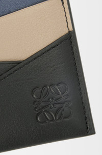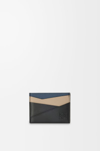 Cardholder inspired by the Puzzle bag's distinctive geometric pattern. This version is crafted in classic calfskin in contrasting colours. - Four card slots, one central pocket - Calfskin lining - Embossed Anagram Colour: Indigo Dye/Corda Main material: Classic Calf Weight: 0.03 kg Height: 7.5 cm Width: 10.3 cm Depth: 0.3 cm Made in: Spain