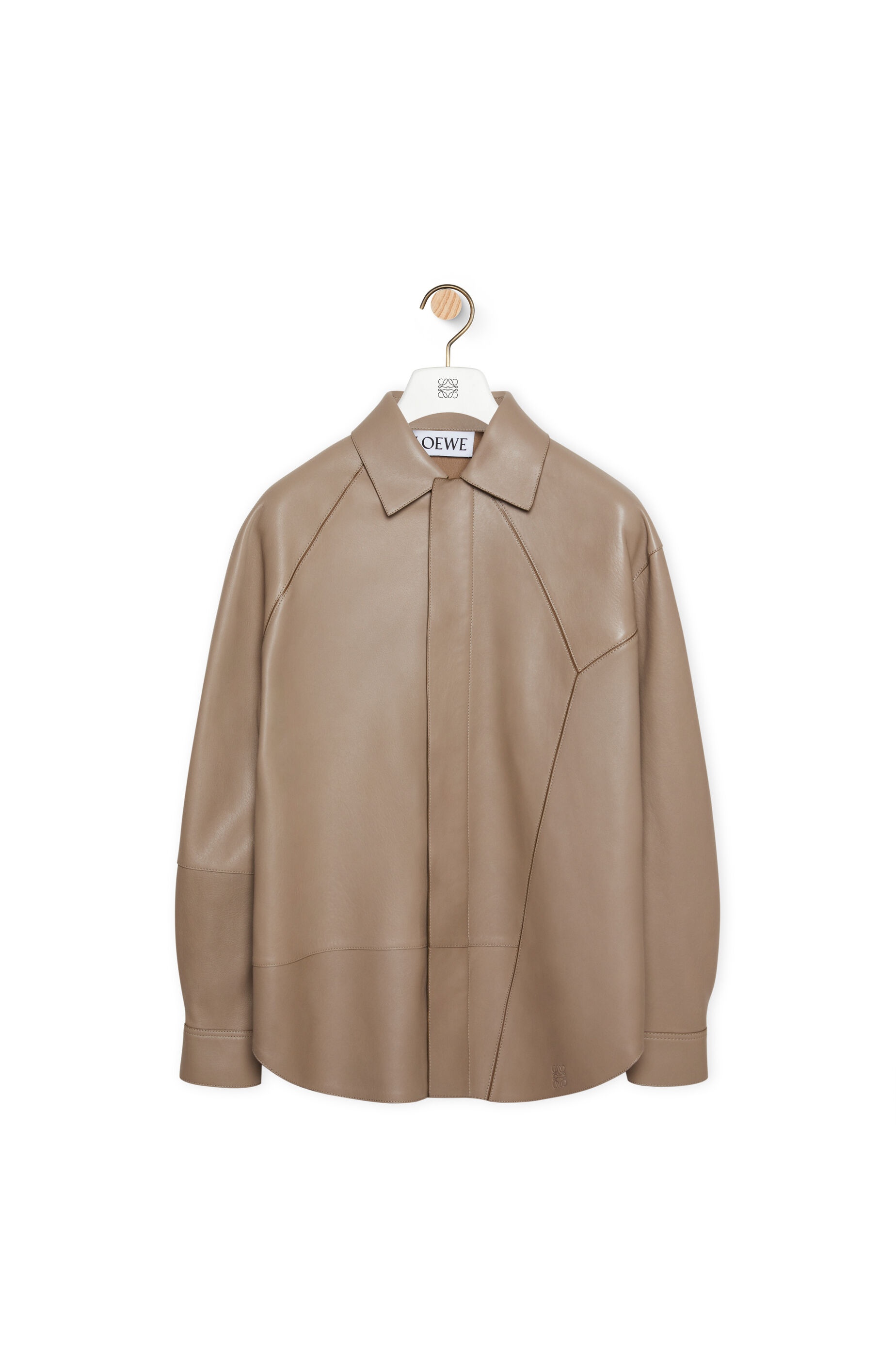 Button front shirt in grained nappa with asymmetric seams all-over inspired by the iconic Puzzle bag. - Regular fit - Concealed zip fastening - Buttoned cuffs - Embossed Anagram at the hem Details - Colour: Sand - Main material: Nappa - Weight: 1.4 kg - Model ID: H526Y31L07 - Made in: Spain