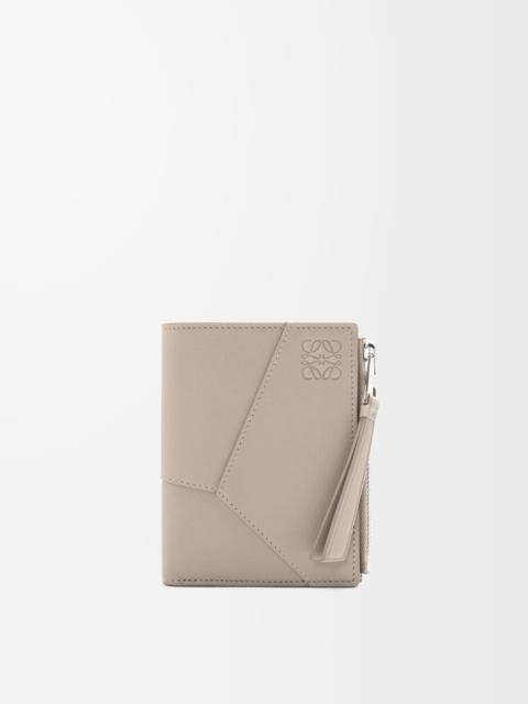 Slim compact wallet inspired by the signature Puzzle bag and featuring the distinctive geometric pattern. This version is crafted in classic calfskin in contrasting colours with overlapped edges. - Zip coin compartment - Calfskin zip pull - Snap button closure - Six card slots, four slip pockets and larger pocket for notes - Calfskin lining - Embossed Anagram Details - Colour: Olive/Dark Brown - Metallic colour: Palladium - Main material: Classic Calf - Weight: 0.08 kg - Height (cm): 11.8 - Width (cm): 9.3 - Depth (cm): 1 - Height (inch): 4.6 - Width (inch): 3.7 - Depth (inch): 0.4 - Model ID: C510W73X03 - CIL: 0011083995 - Made in: Spain