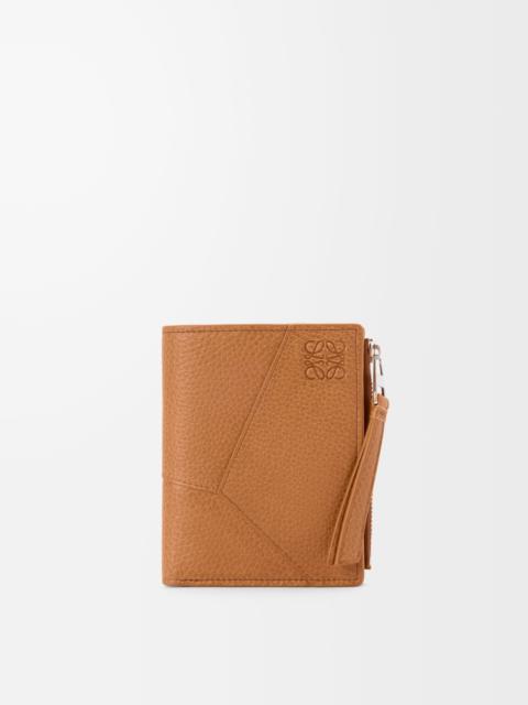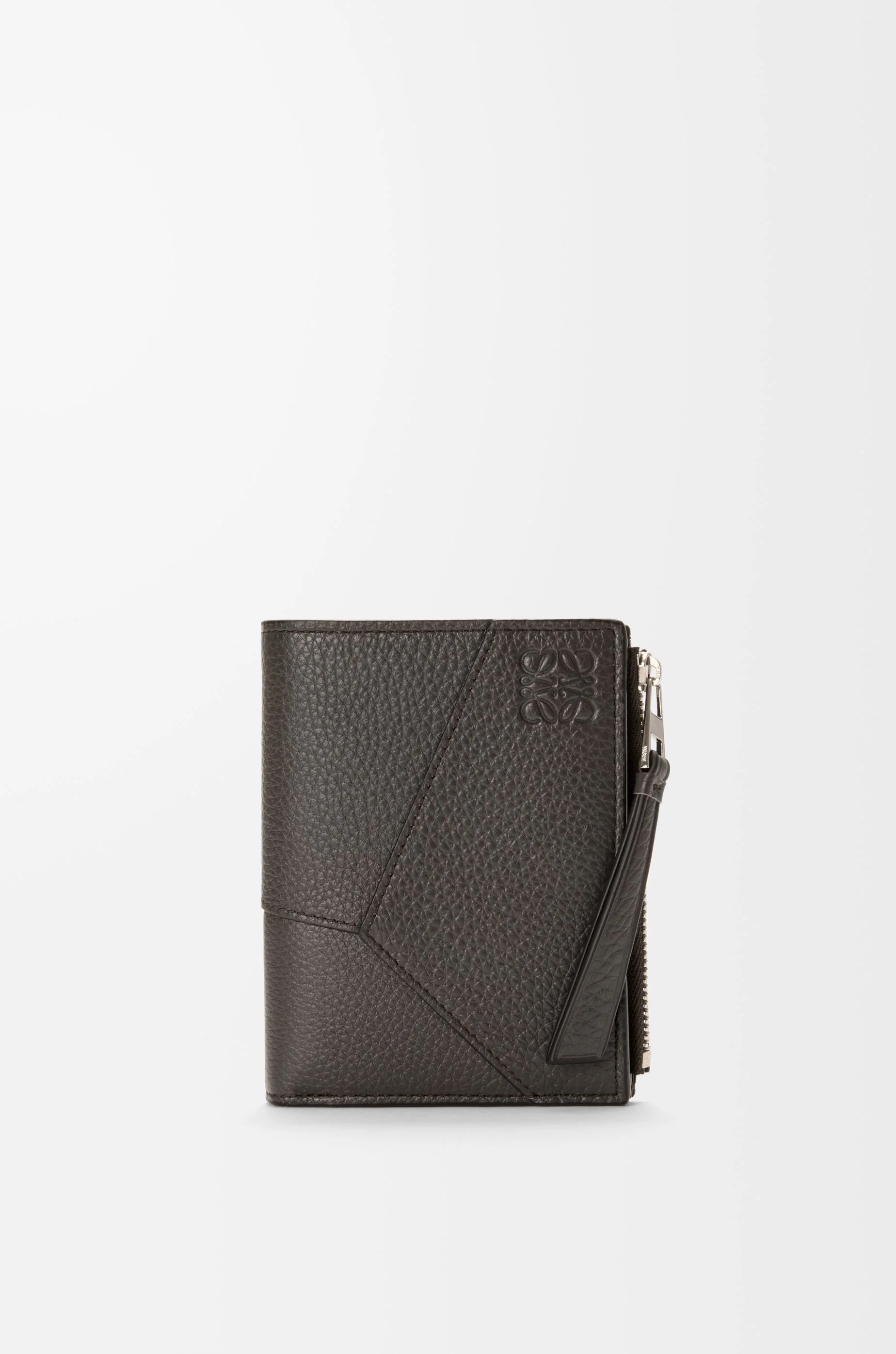 Slim compact wallet inspired by the Puzzle bag's distinctive geometric pattern. This version is crafted in supple grained calfskin. - Six card slots, four slip pockets, one large note pocket - One zipped coin compartment with calfskin pull - Snap button closure - Calfskin lining - Embossed Anagram Colour: Dark Grey Metallic colour: Palladium Main material: Supple grained calf Weight: 0.078 kg Height: 11.8 cm Width: 9.3 cm Depth: 1 cm Made in: Spain