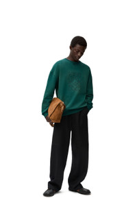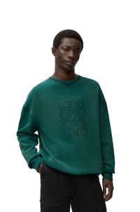 Sweatshirt in medium-weight loopback cotton fleece featuring a laser-cut LOEWE Anagram applique placed on the chest. - Regular fit, regular length - Crew neck - Rib knit collar, cuffs and hem - V detail at the front Details - Colour : Dark Green - Main material : Cotton - Weight : 0.7 kg - Model ID : H526Y24X58 - Made in : Portugal