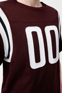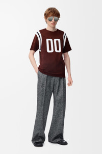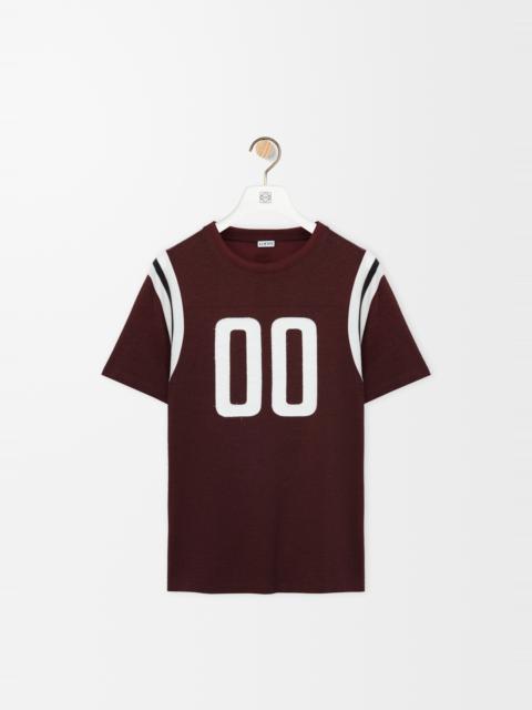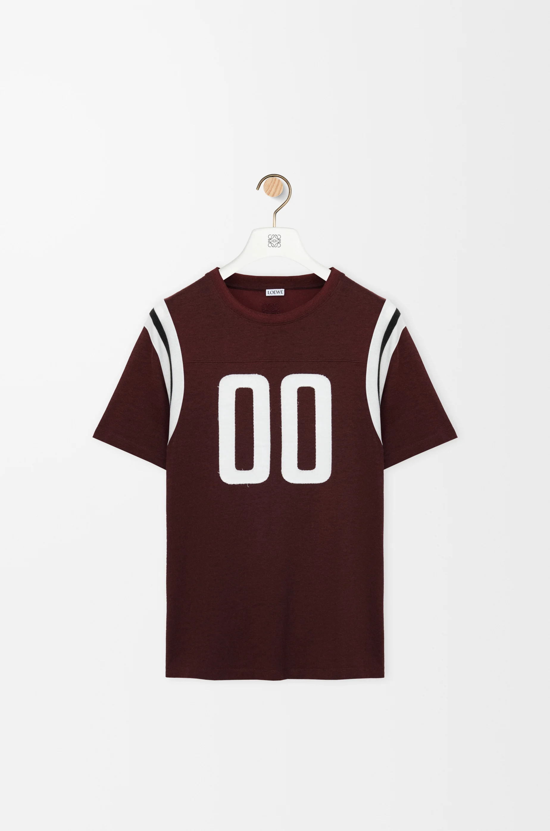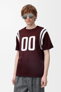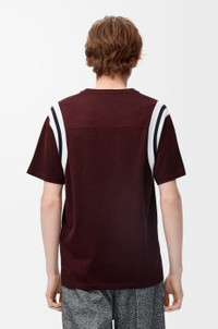 T-shirt in lightweight mercerised cotton featuring stitched numbers at the front and striped knit armholes. - Regular fit, regular length - Crew neck - Anagram embroidery placed at the back Colour: Burgundy Main material: Cotton/Viscose Weight: 0.2 kg Made in: Portugal Materials & care Main Material: 76% cotton 24% viscose