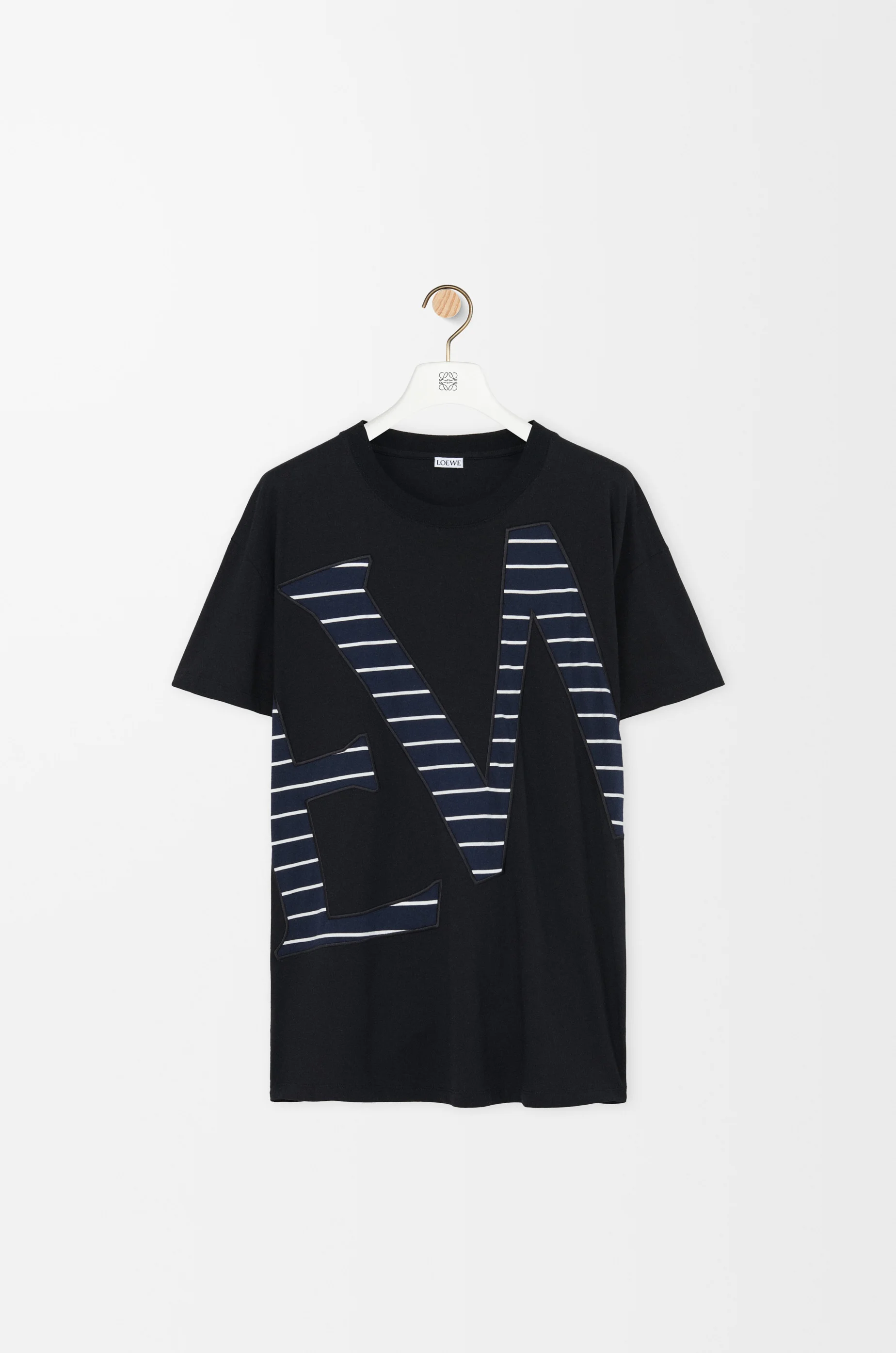 T-shirt in lightweight cotton featuring an oversized striped LOEWE intarsia embroidery. - Relaxed fit, regular length - Crew neck Colour: Black Main material: Cotton Weight: 0.25 kg Made in: Portugal Materials & care Main Material: 100% cotton
