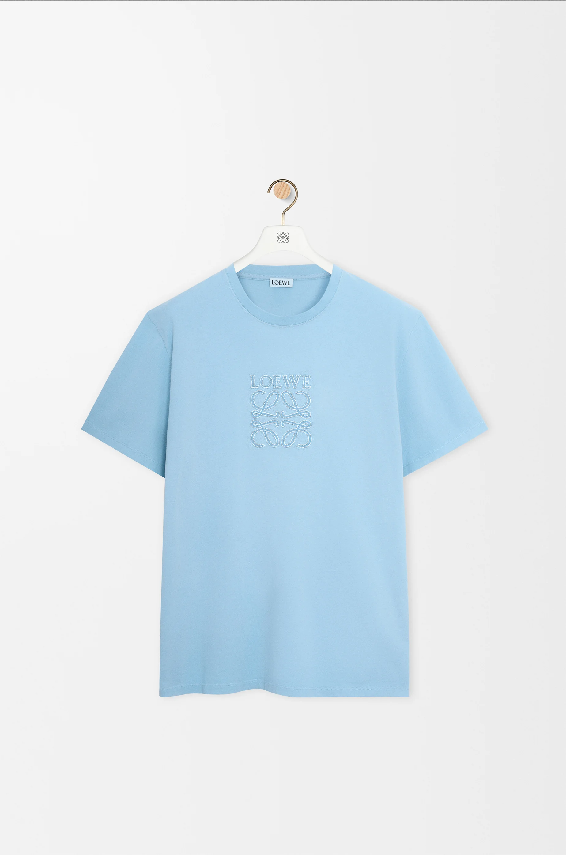 T-shirt in lightweight cotton featuring a laser-cut LOEWE Anagram applique placed on the chest. - Relaxed fit, regular length - Ribbed crew neck Details - Colour : Light Blue - Main material : Cotton - Weight : 0.2 kg - Model ID : H526Y22XBN - Made in : Portugal