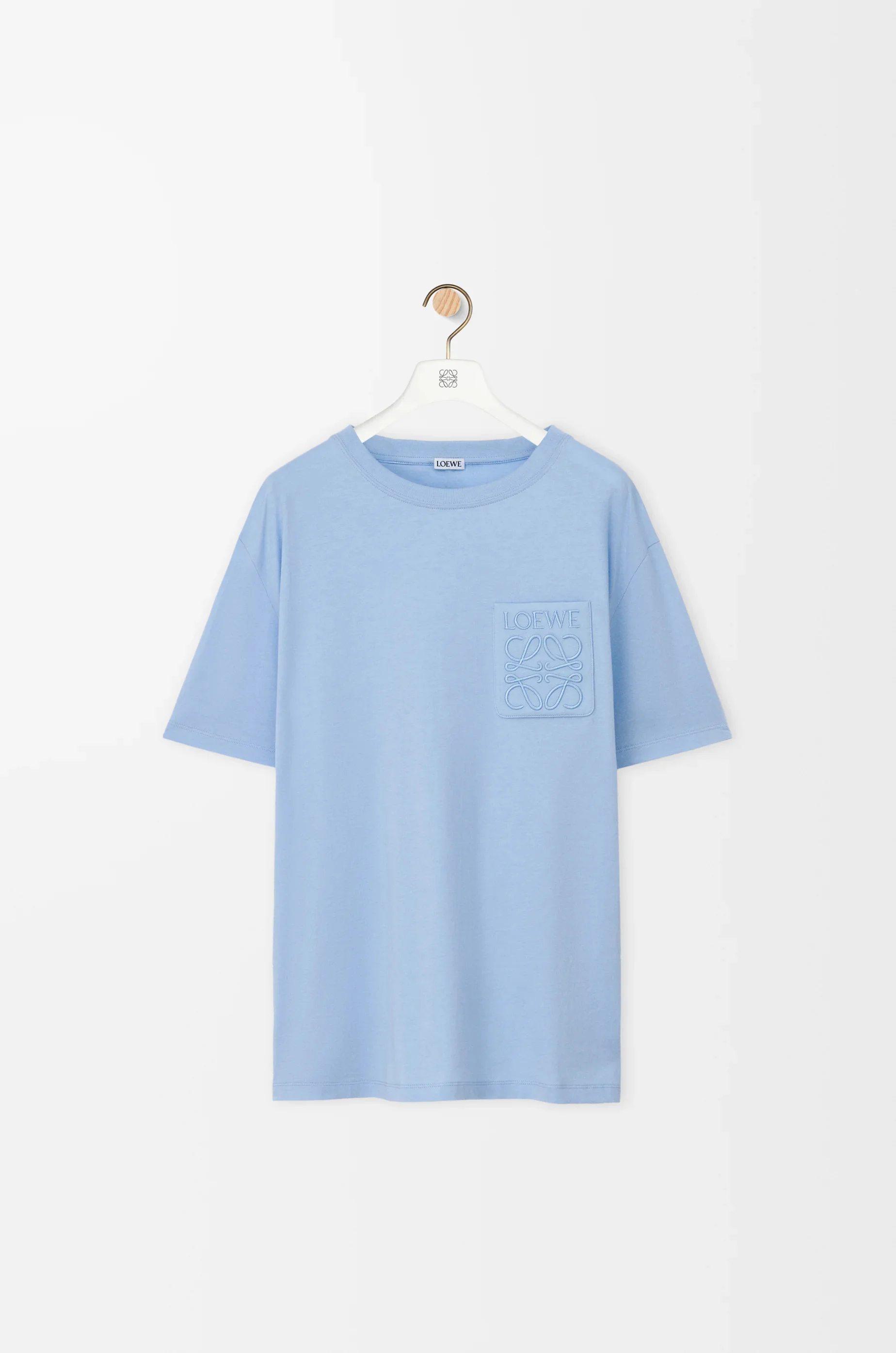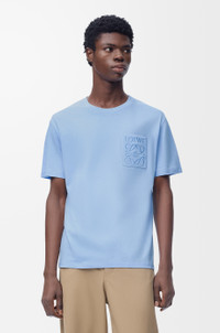 T-shirt in lightweight cotton. - Relaxed fit, regular length - Crew neck - Ribbed collar - LOEWE Anagram embroidery placed on the chest patch pocket Colour: Sky Blue Main material: Cotton Weight: 0.2 kg Made in: Portugal Materials & care Main Material: 100% cotton Other Material: 99% cotton 1% elastane