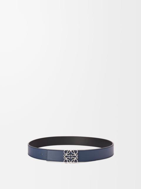 Reversible belt in smooth calfskin with an Anagram buckle. - 3.5cm wide - Five holes regulation Details - Colour: Ocean/Black/Palladium - Metallic colour: Palladium - Main material: Smooth Calf/Brass - Weight: 0.11 kg - Depth (cm): 3.5 - Depth (inch): 1.4 - Model ID: E619Z20X03 - Made in: Spain