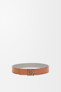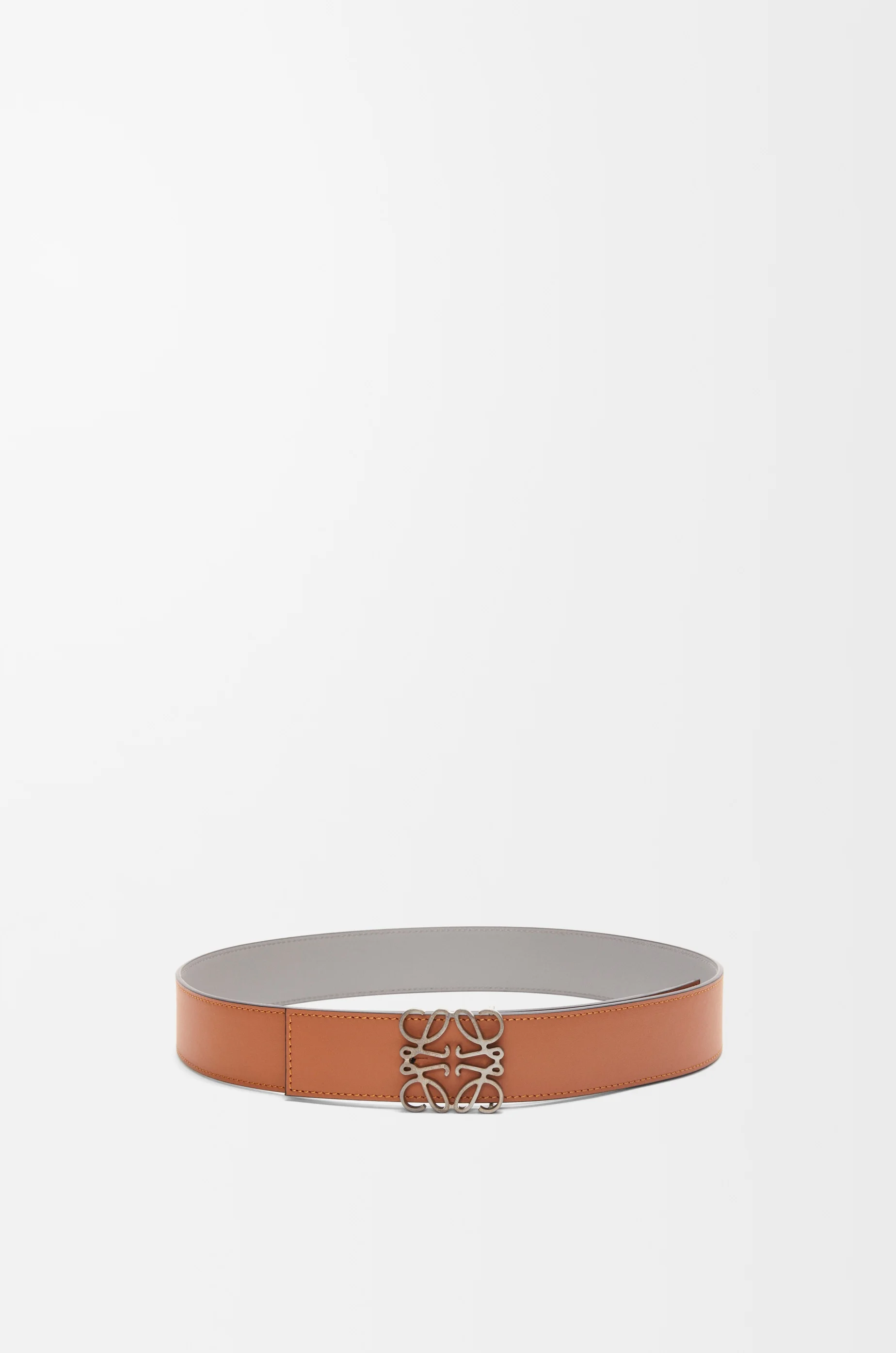 Reversible belt in smooth calfskin with an Anagram buckle. - 4cm wide - Five holes regulation Details - Colour: Tan/Asphalt Grey/Pewter - Metallic colour: Ruthenium - Main material: Smooth Calf/Brass - Weight: 0.133 kg - Depth (cm): 4 - Depth (inch): 1.6 - Model ID: 515.01.010 - Made in: Spain