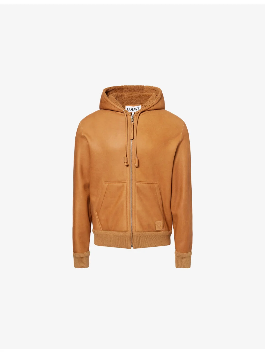 PRODUCT DETAILS - LOEWE shearling jacket - 100% lamb leather; trims 77% wool, 11% polyamide, 9% cashmere, 3% elastane - Exposed zip fastening at front - Regular fit, drawstring hood, long sleeves, two patch pockets and brand patch at front, all-over shearling texture, ribbed trims, reversible - Specialist leather clean - Made in Italy - Size UK 40: length 26in / 66cm, chest 43in / 109cm - Model is 6ft 2in/1.88m and wears a size UK 40 - Midweight, non-stretch Ref: R04565765