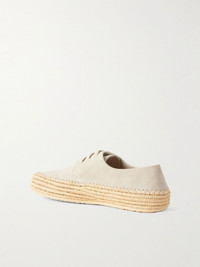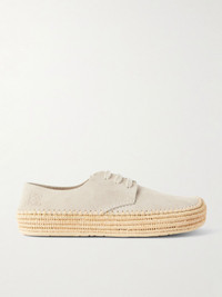 Loewe's 'Rio' espadrilles are made from supple suede and set on handcrafted raffia soles with whipstitched trims and comfortable padded insoles. They're finished with a lace-up front, elevating them from traditional slip-on styles. Size & Fit - Fits true to size. Take your normal size - Only available in full sizes, go down to the nearest whole size if you take a half size - European sizing Details & Care - Beige leather - Lace-up
