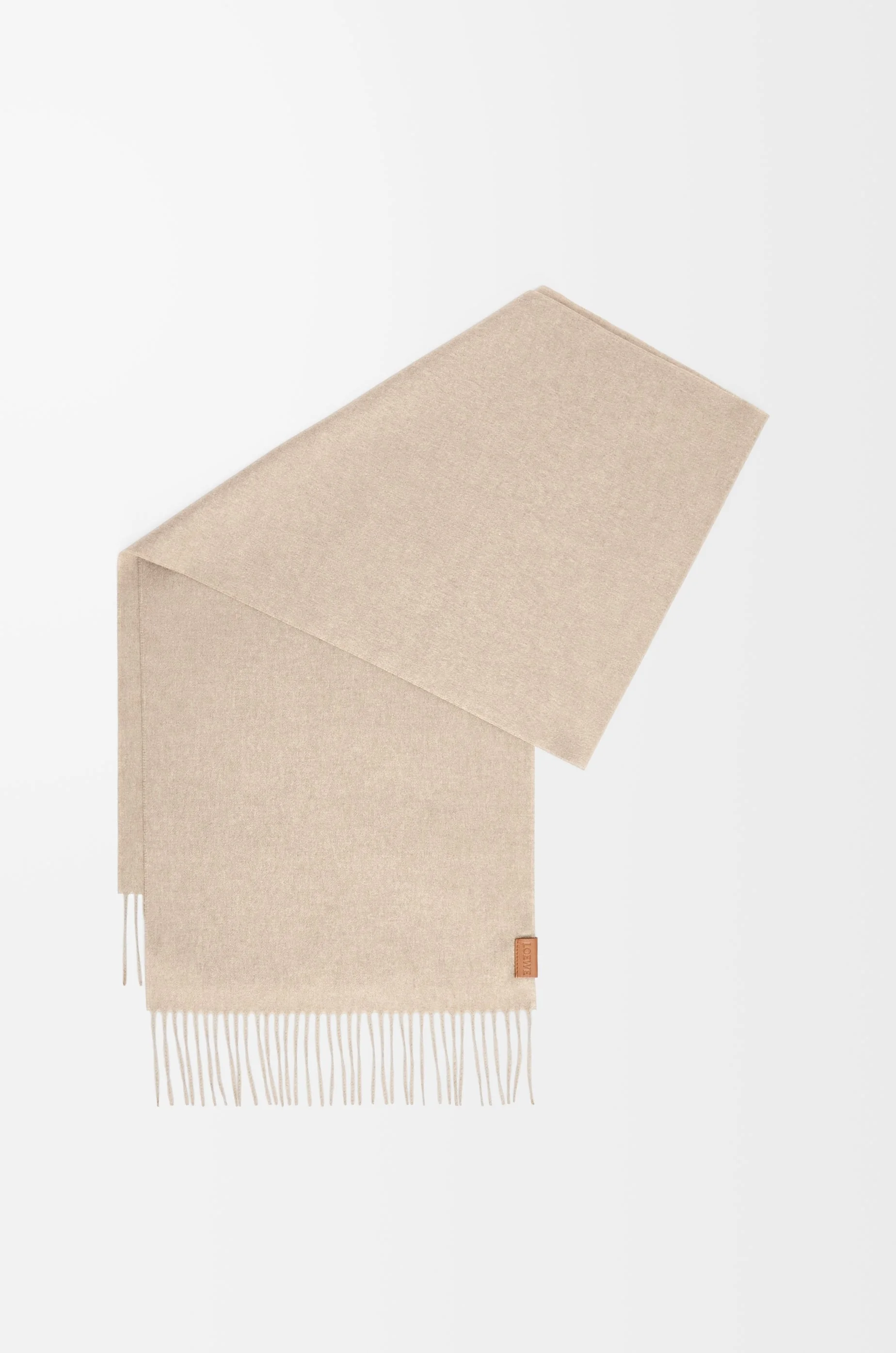 Scarf crafted in medium-weight cashmere. - 35cm x 170cm - Fringed edges - LOEWE leather patch placed on the side edge Details - Colour : Light Beige - Main material : Cashmere - Weight : 0.165 kg - Height (cm) : 170 - Width (cm) : 35 - Height (inch) : 66.9 - Width (inch) : 13.8 - Model ID : F811257X68 - CIL : - 0011080868 - Made in : Italy