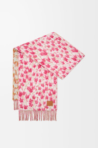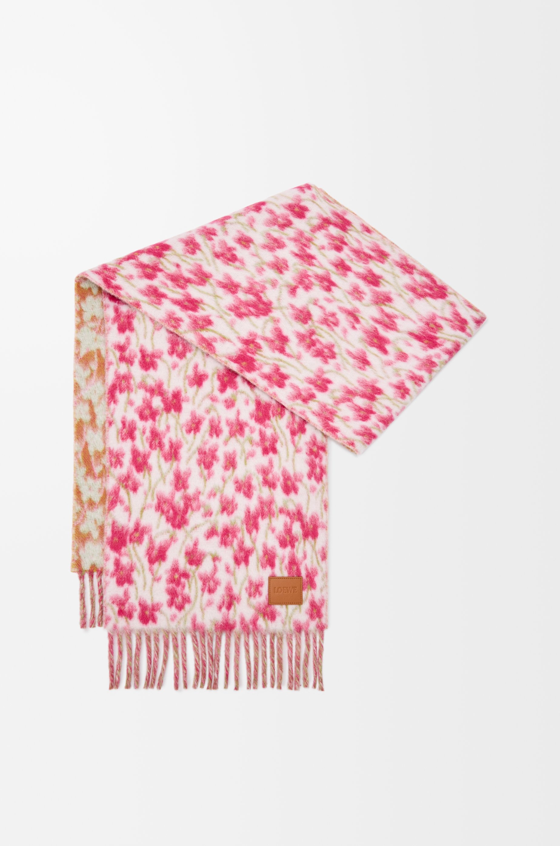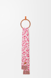 Scarf in medium-weight brushed wool and alpaca blend jacquard featuring an allover floral pattern. - 30cm x 190cm - Fringed edges - LOEWE embossed leather patch placed on the corner Colour: Pink/Multicolor Main material: Alpaca/Wool Weight: 0.333 kg Height: 190 cm Width: 30 cm Made in: Italy