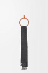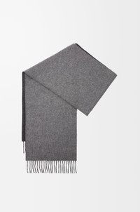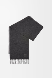 Scarf crafted in double face wool and cashmere blend. - 28cm x 180cm - Two-tone design - Fringed edges - LOEWE Anagram leather patch placed on the corner Details - Colour : Black/Grey - Main material : Wool/Cashmere - Weight : 0.163 kg - Height (cm) : 180 - Width (cm) : 28 - Height (inch) : 70.9 - Width (inch) : 11 - Model ID : F811251X06 - CIL : - 0011204765 - Made in : United Kingdom