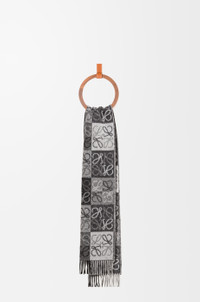 Scarf crafted in medium-weight double face wool and cashmere blend. - 38cm x 180cm - Reversible checkerboard pattern with allover Anagram jacquard - Fringed edges Details - Colour: Black/White - Main material: Wool/Cashmere - Weight: 0.199 kg - Height (cm): 38 - Width (cm): 180 - Height (inch): 15 - Width (inch): 70.9 - Model ID: F810487X17 - CIL: 0010793479 - Made in: United Kingdom