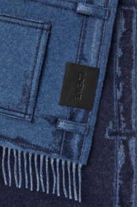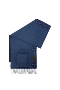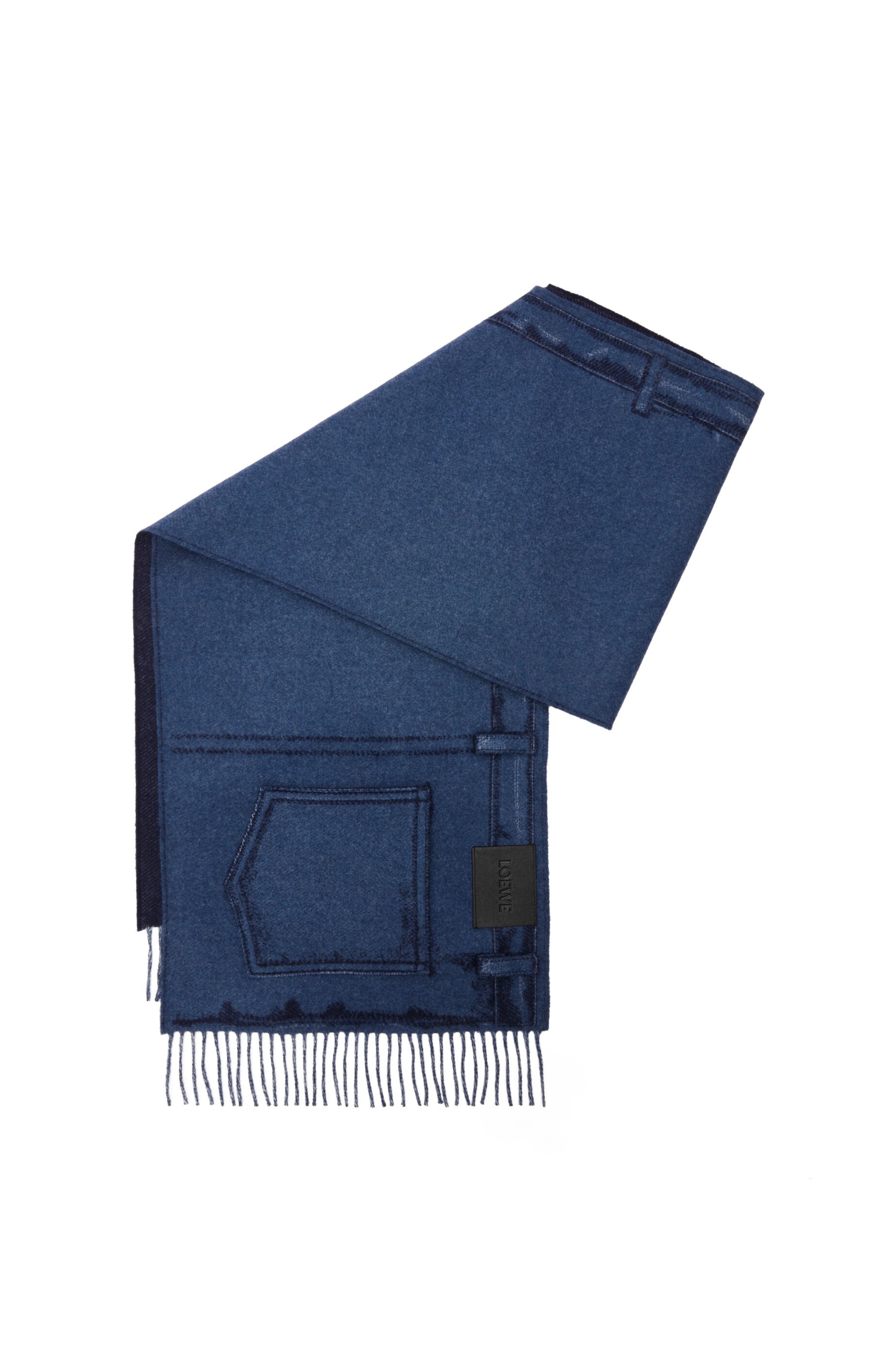 Scarf crafted in double face wool and cashmere blend. - 38cm x 180cm - Trompe l’oeil jean pattern - Fringed edges - LOEWE leather patch placed on the corner Details - Colour : Jeans Blue - Main material : Wool/Cashmere - Weight : 0.163 kg - Height (cm) : 180 - Width (cm) : 38 - Height (inch) : 70.9 - Width (inch) : 15 - Model ID : FSA4SS1X02 - CIL : - 0011238748 - Made in : United Kingdom