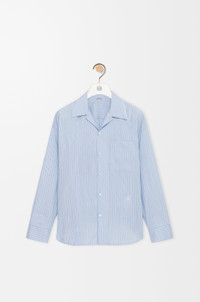 Shirt in lightweight cotton featuring a vertical stripe pattern with horizontal stripes at the cuffs. - Regular fit, regular length - Camp collar - Button front fastening, buttoned cuffs - Chest patch pocket - LOEWE L embroidery placed at the front Colour: White/Navy Main material: Cotton Weight: 0.2 kg Made in: Italy Materials & care Main Material: 100% cotton