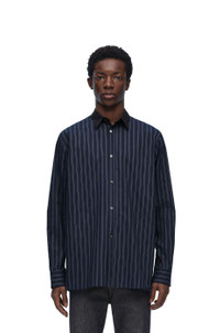 Shirt crafted in lightweight striped cotton poplin. - Regular fit - Regular length - Classic contrast collar - Long sleeves - Buttoned cuffs - Button front fastening - Knife pleats at the back - Straight hem - LOEWE L embroidery placed at the front Details - Colour: Dark Navy / Grey / Black - Main material: Cotton - Weight: 0.3 kg - Model ID: H526Y05X26 - Made in: Italy
