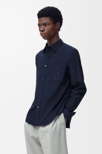 Shirt in lightweight cotton poplin. - Regular fit, regular length - Classic collar - Button front fastening, buttoned cuffs - LOEWE Anagram embroidered chest patch pocket Colour: Dark Navy Main material: Cotton Weight: 0.2 kg Made in: Italy Materials & care Main Material: 100% cotton Other Material: 100% polyester
