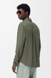 Shirt in lightweight fluid viscose blend cady. - Regular fit, regular length - Classic collar - Button front fastening, buttoned cuffs - Buttoned chest flap pockets - Box pleat at the back - Anagram embroidery placed at the back Colour: Khaki Green Main material: Viscose/Elastan Weight: 0.4 kg Made in: Italy Materials & care Main Material: 96% viscose 4% elastane
